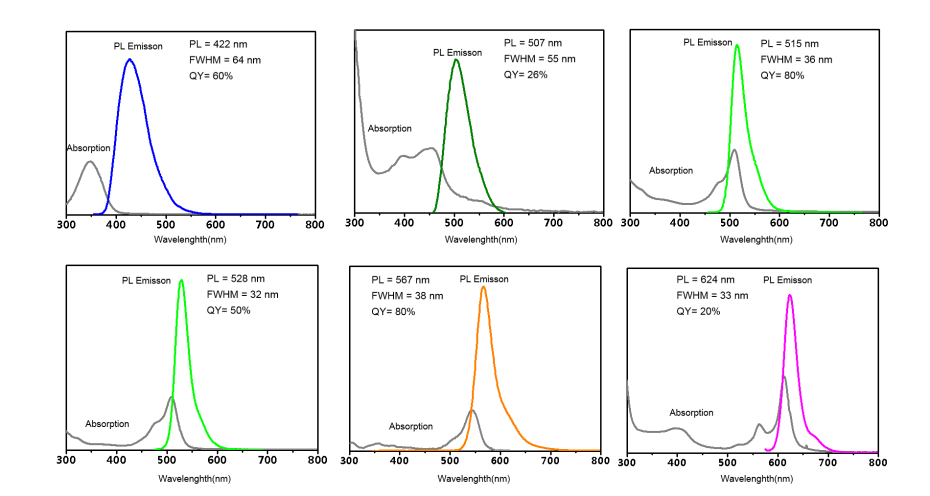 | PLEmission | FWHM | QY | Amount | CatNO. |